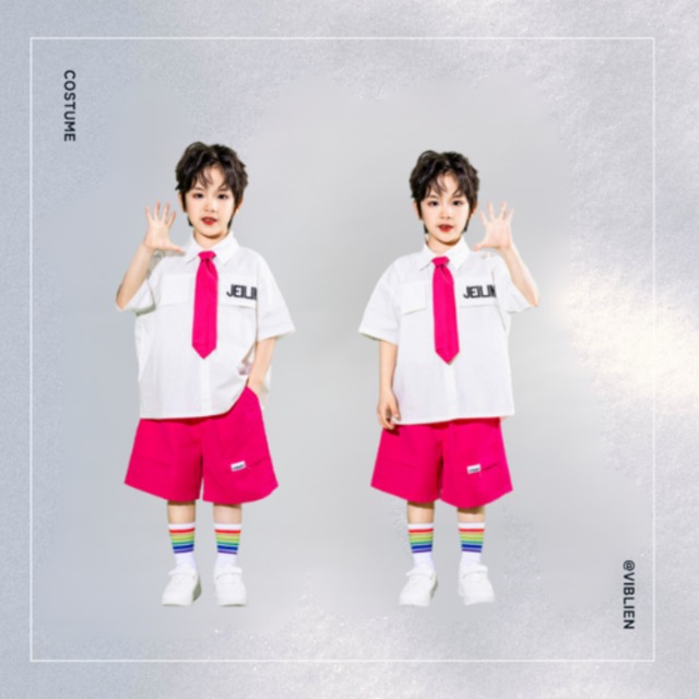 こちらはBセット(パンツ)のページになります。 《個性を引き出す!存在感抜群のステージ衣装》 カラフル×キュート!元気いっぱいの制服風コーデ 白シャツにビビッドなピンクのボトムスとリボンを合わせた、明るくポップな印象のセットアップ。 女の子はプリーツスカート、男の子はハーフパンツで、ユニフォーム風に揃えてもバランス抜群! グループで揃えればステージ映えも◎!幼児〜小学生のキッズダンサーにぴったりの、発表会・イベント向け衣装です。 セット内容: Aセット: トップス+スカート+ネクタイ Bセット: トップス+ハーフパンツ+ネクタイ ・商品に関する注意事項 ※色映りする可能性があるため、洗濯の際はご注意下さい。 ※生産工程の変更や手作業での計測により数センチの誤差がある場合がございます。 ※モニターカラーにより写真と実物の色味に差がある場合がございます。 ※海外製品のため多少のほつれが生じる場合がございますが、品質には問題ございませんのでそのままご使用ください。 ※在庫システムの更新タイムラグにより、ご注文後に在庫が無い場合がございます。その際には他サイズもしくは他商品をご提案させていただき場合がございます。予めご了承ください。 ※商品の発送は通常2〜5週間程度でのお届けとなります。あらかじめご了承ください。