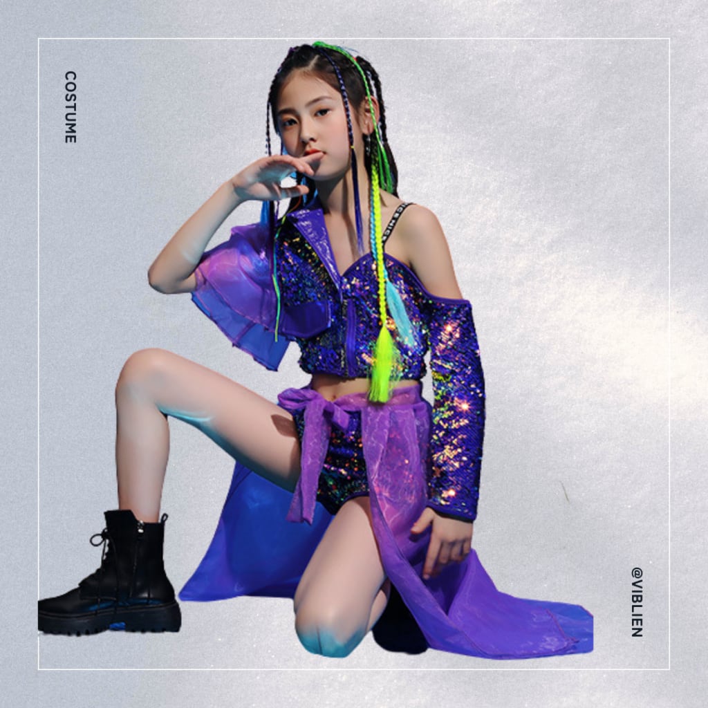 ・素材感:スパンコールと光沢素材が光を反射し、ステージでの存在感は抜群!