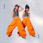 ・ボトムス:鮮やかなオレンジのバギーパンツは、ゆったりシルエット&サイドポケット付きで機能性も抜群