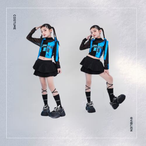 Bタイプ:黒×青のミニスカートスタイル。動きやすく、ステージ映えも抜群!