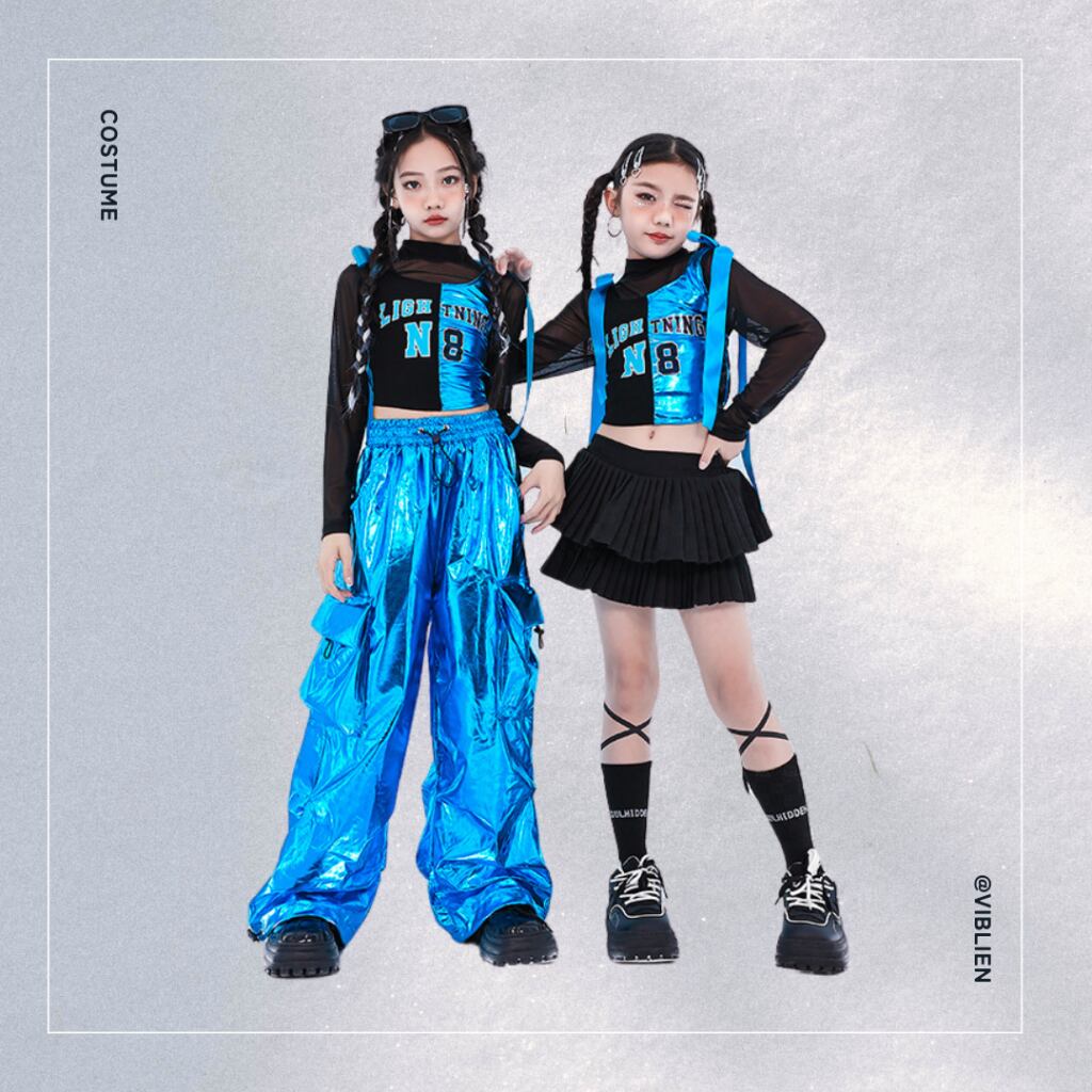 Bタイプ:黒×青のミニスカートスタイル。動きやすく、ステージ映えも抜群!