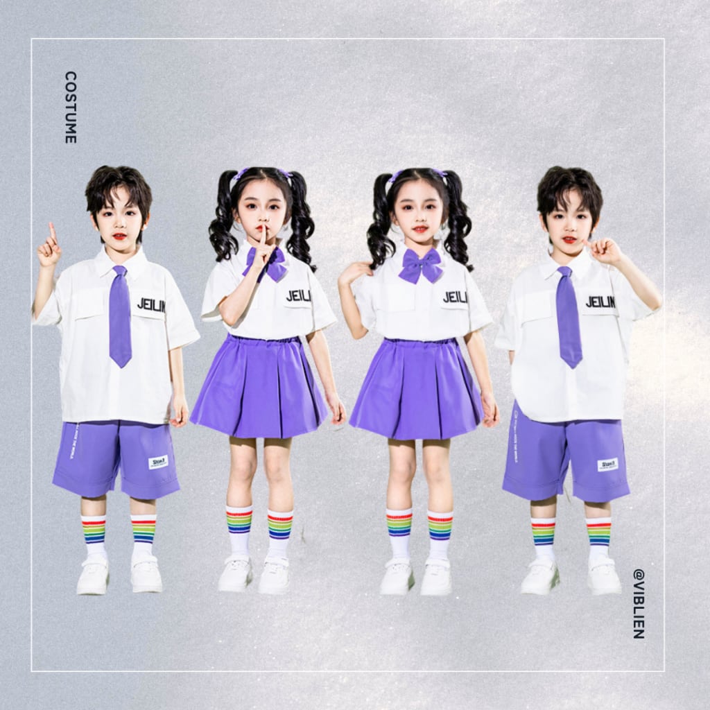 女の子はプリーツスカート、男の子はハーフパンツで、ユニフォーム風に揃えてもバランス抜群!