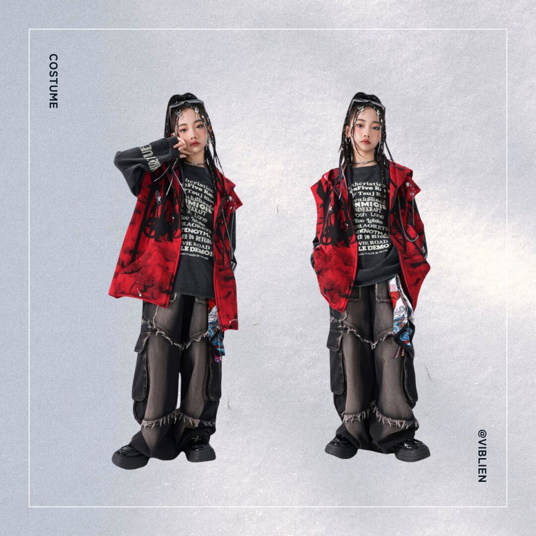 Bセット: 個性爆発!レッド×ブラックの最強ペアコーデ c-0046