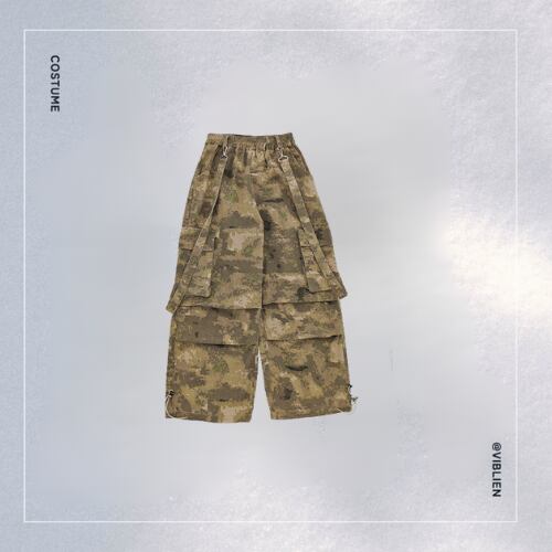 ・ベスト&パンツ:統一感のある迷彩柄で、ストリート感を演出