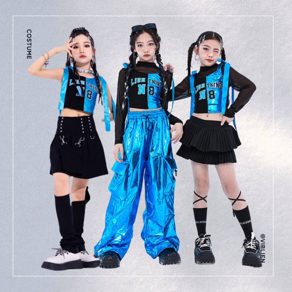 Bタイプ:黒×青のミニスカートスタイル。動きやすく、ステージ映えも抜群!