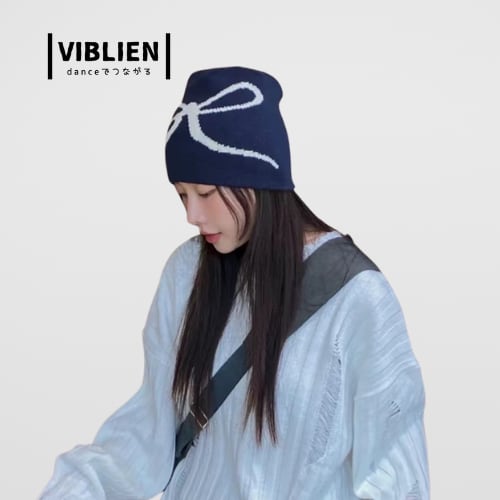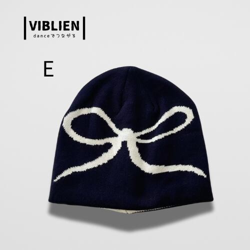リボンモチーフのロゴがキュートな、ガールズダンサーにぴったりのニット帽