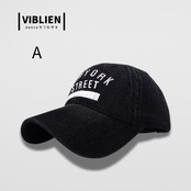 ストリート感あふれる「NEW YORK STREET」刺繍が映えるデニムキャップ。
